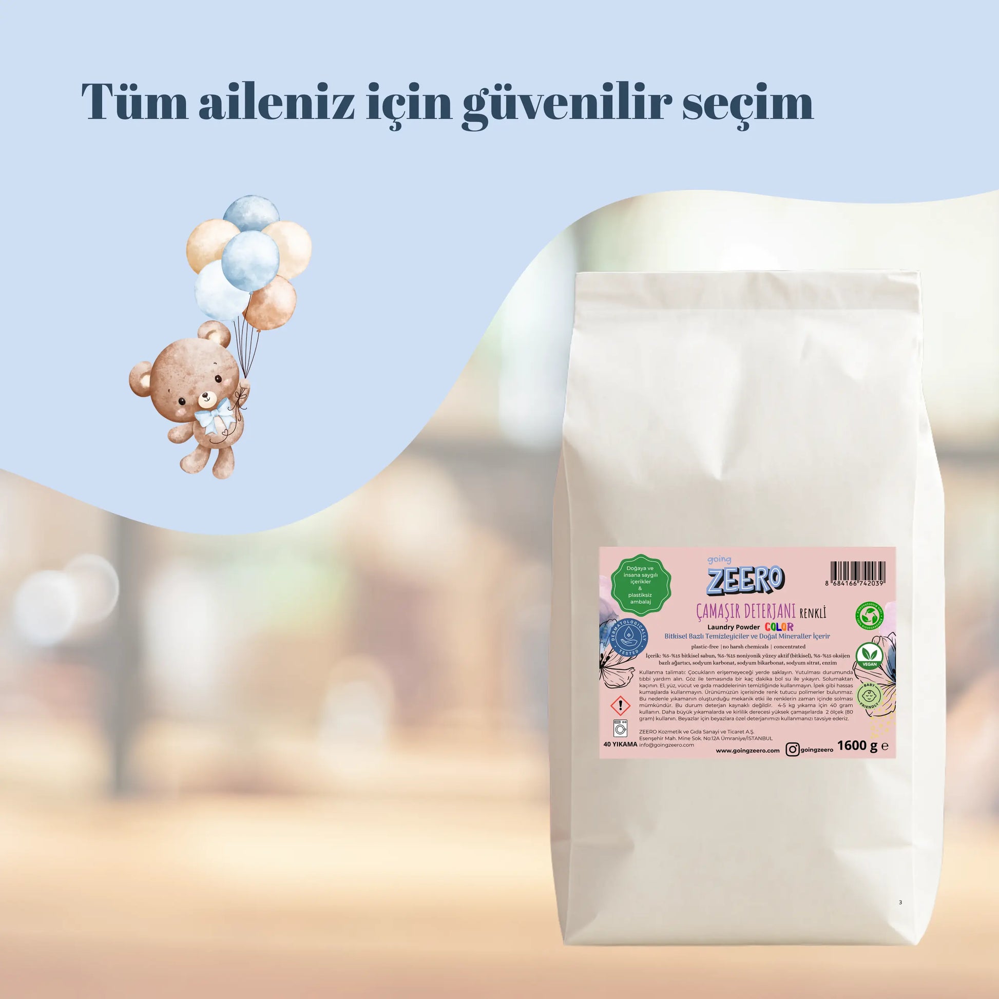 🌿 Going Zeero Natural Laundry Detergent is produced from plant-based and mineral-derived raw materials. Formulated specifically for colored laundry, Going Zeero Natural Laundry Detergent prevents fading of your colored clothes.